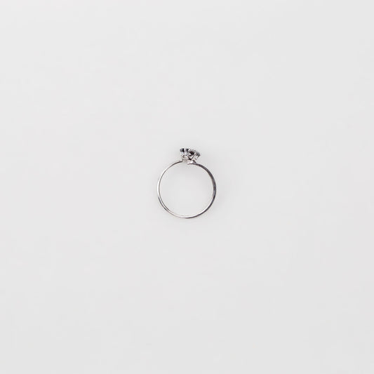Inel reglabil argintiu cu biluță și pietre în formă de floare