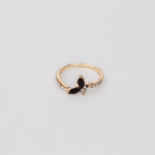 Inel auriu cu pietre sidefate în formă de fluture - Negru