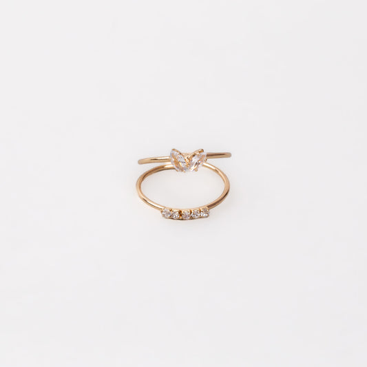 Inel dublu cu formă de inimă și ștrasuri mici - Auriu