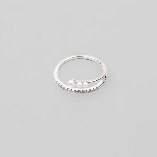 Inel dublu cu biluțe și pietre discrete - Argintiu