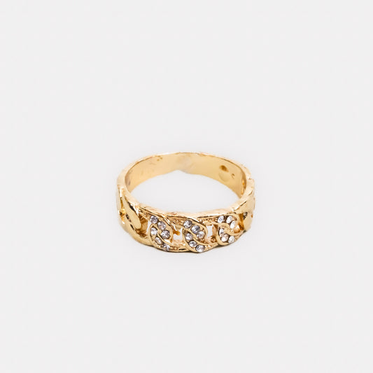 Inel lat în forme de zig zag cu ștrasuri delicate - Auriu