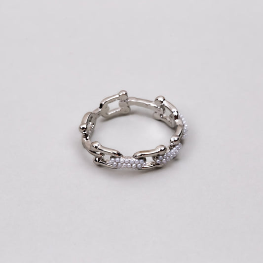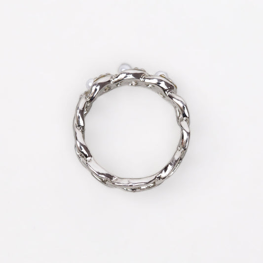 Inel în formă de zale cu biluțe și ștrasuri - Argintiu
