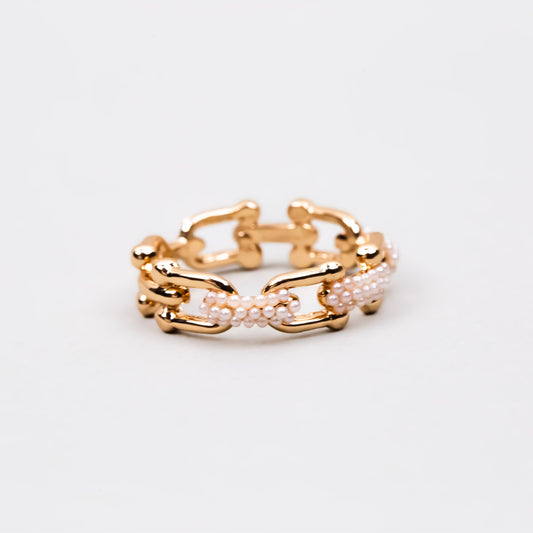 Inel auriu cu formă de zale și accent color - Roz Neon