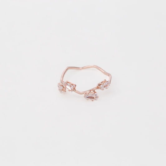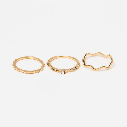 Set 3 inele subțiri ondulate cu pietre delicate - Auriu