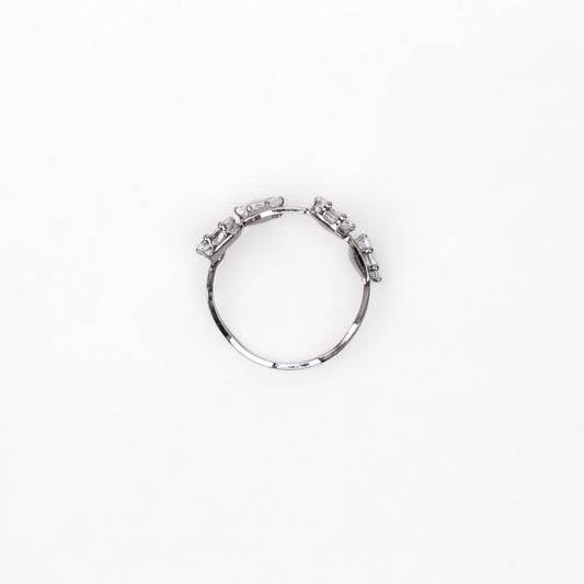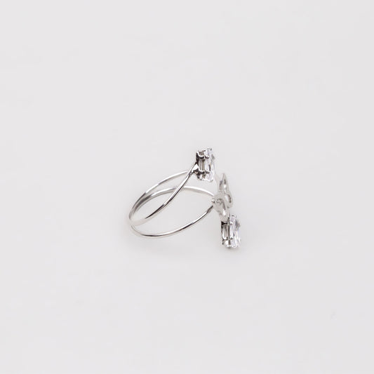 Inel reglabil cu forme de fluturi și pietre discrete - Argintiu