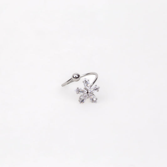 Inel delicat cu floare și pietre strălucitoare - Argintiu