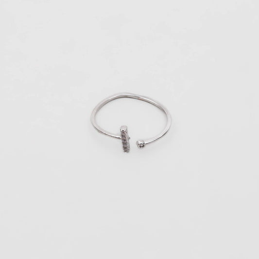 Inel cu element în formă de X și ștrasuri - Argintiu