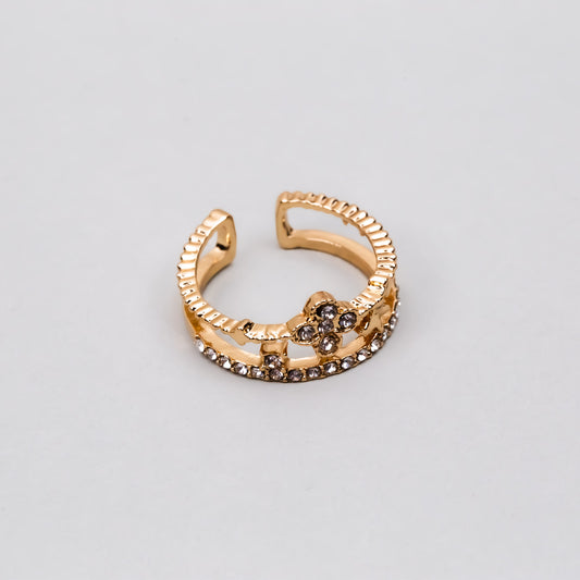 Inel auriu dublu cu pietre și ștrasuri - Verde