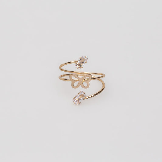 Inel spiralat triplu cu fluture și pietre - Auriu