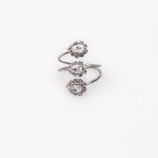 Inel spiralat triplu cu ștrasuri și pietre strălucitoare - Argintiu
