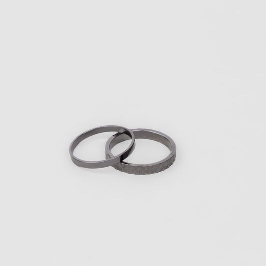 Inele simple în stil minimal cu striații, set 2 buc - Negru