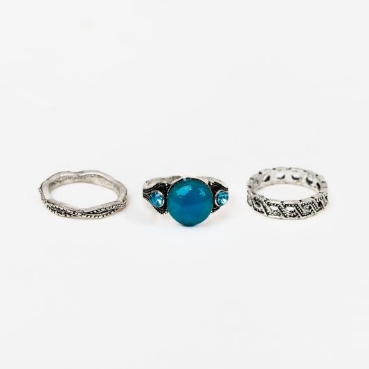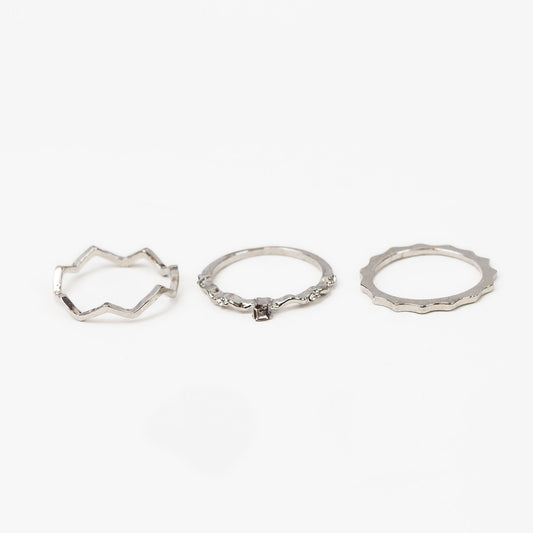 Set 3 inele subțiri ondulate cu pietre delicate - Argintiu