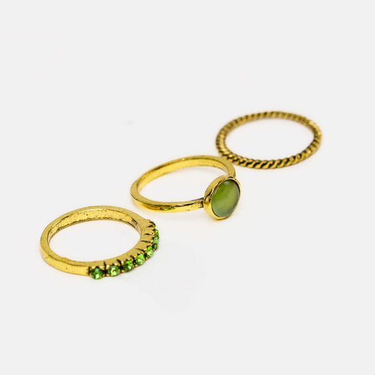 Set 3 inele vintage subțiri cu pietre - Verde, Auriu