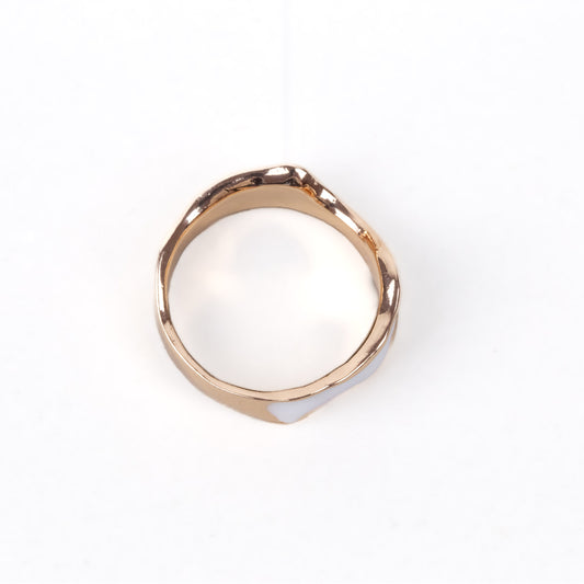Inel auriu cu formă abstractă și accent color - Alb