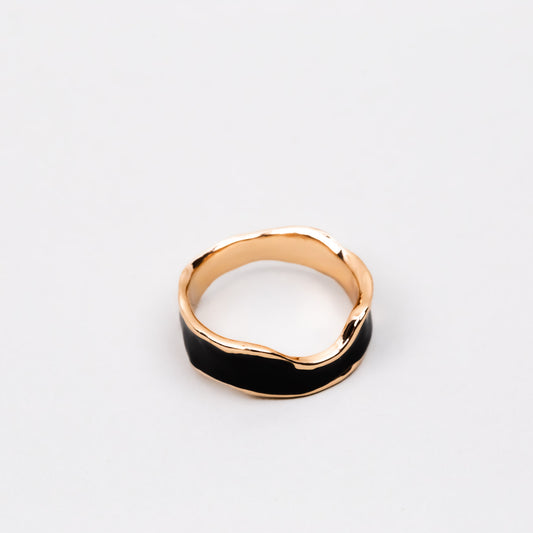 Inel auriu cu formă abstractă și accent color - Negru