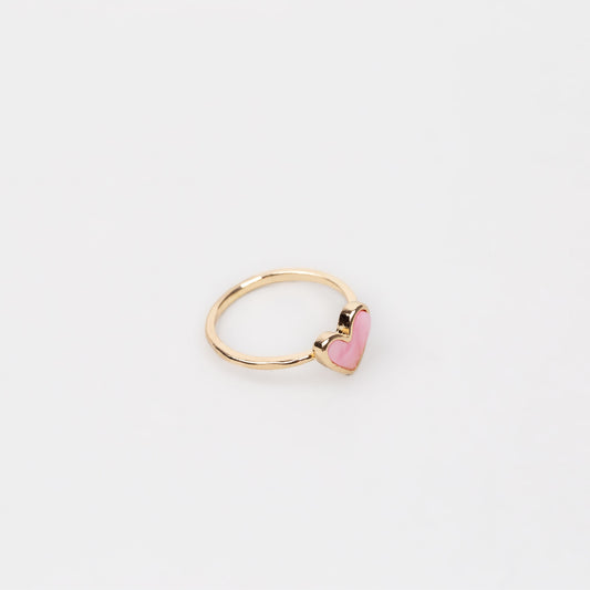 Inel auriu cu piatră sidefată în formă de inimă - Roz