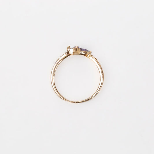 Inel auriu cu ștrasuri și pietre mov