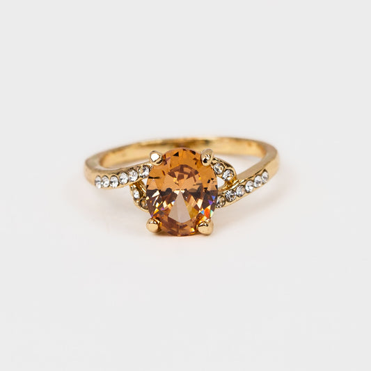 Inel cu piatră ovală și ștrasuri - Auriu