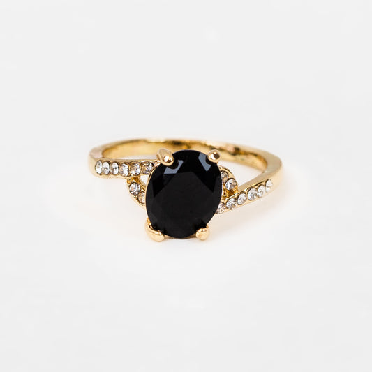 Inel cu piatră ovală și ștrasuri - Negru