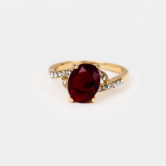 Inel cu piatră ovală și ștrasuri - Roșu
