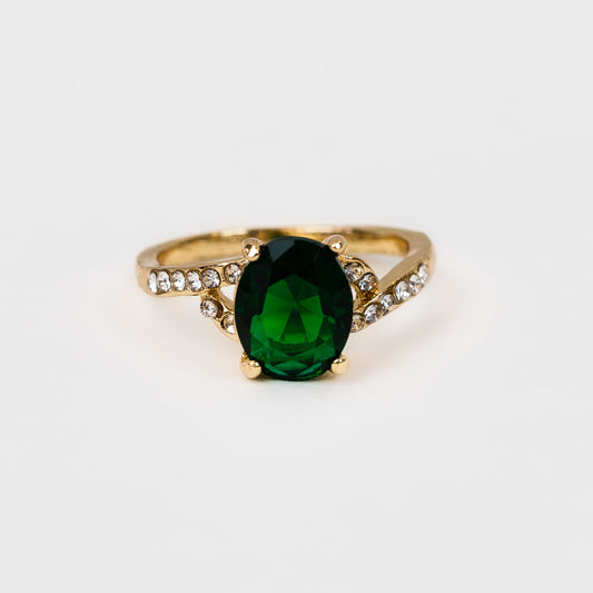 Inel cu piatră ovală și ștrasuri - Verde