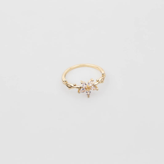 Inel delicat cu floare și pietre strălucitoare - Auriu