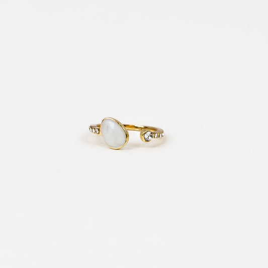 Inel reglabil cu ștrasuri și piatră sidefată - Auriu