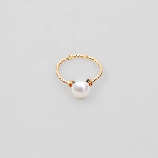 Inel spiralat delicat cu perlă și pietre portocalii - Auriu