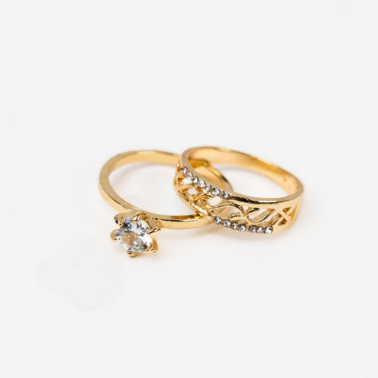 Set 2 inele cu piatră și ștrasuri - Auriu