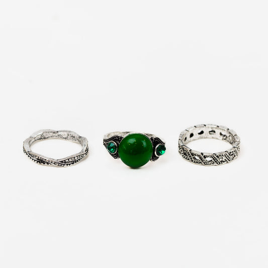 Set 3 inele vintage argintii cu pietre verzi