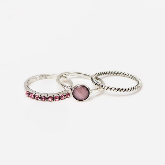 Set 3 inele vintage subțiri cu pietre - Roz, Argintiu