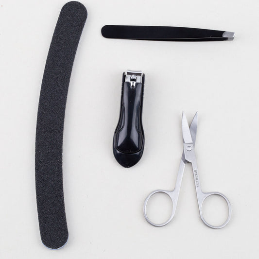 Set esential îngrijire: pilă, foarfecuță cuticule, unghieră, pensetă