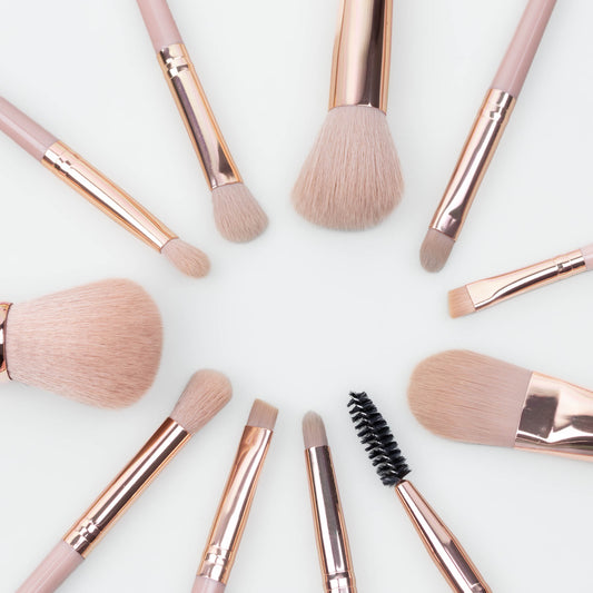 Set pensule pentru machiaj cu 11 piese - Rose Gold, Roz Pudrat