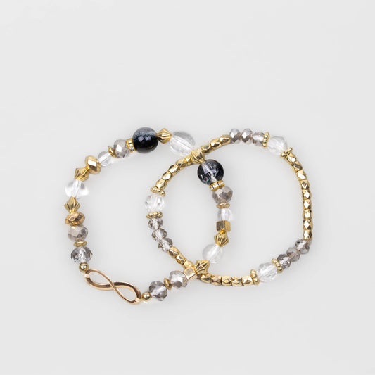Brățări elastice cu mărgele geometrice și formă de infinit, set 2 buc - Auriu, Gri