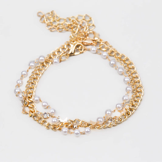 Brățări reglabile cu lanț, biluțe și stele, set 3 buc - Auriu