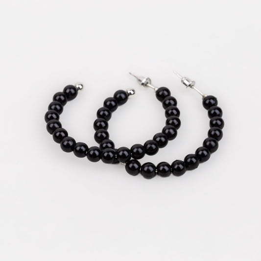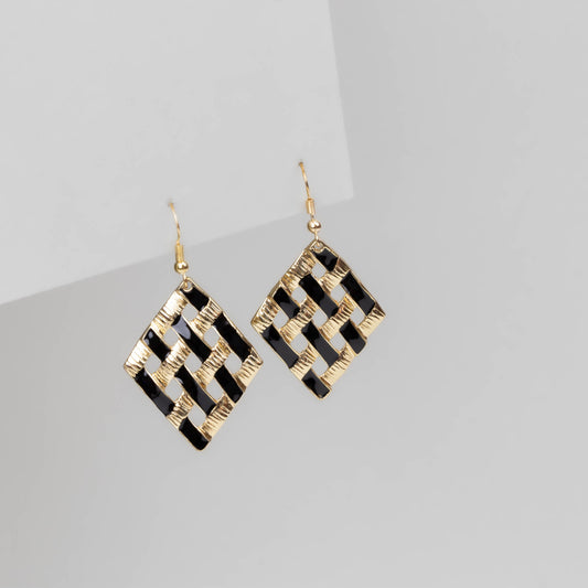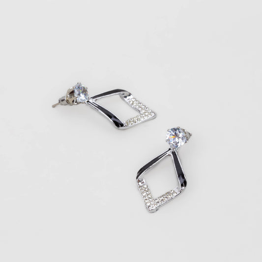 Cercei în formă de romb cu pietre și accent negru - Argintiu