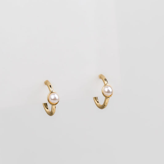 Cercei aurii semirotunzi în stil minimal cu perlă mică