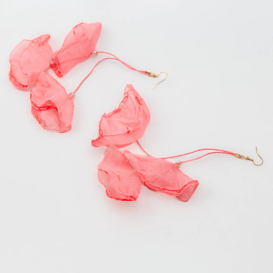 Cercei extra lungi și ușori cu petale delicate din material textil - Strawberry
