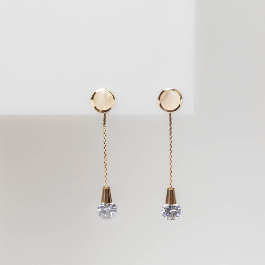 Cercei lungi cat eye cu lănțișor și pietre delicate - Auriu