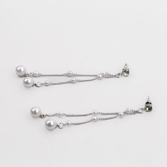 Cercei lungi cu lănțișor, piatră și perle - Argintiu