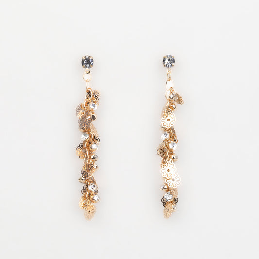 Cercei lungi cu solzi în formă de margaretă și ștrasuri - Auriu