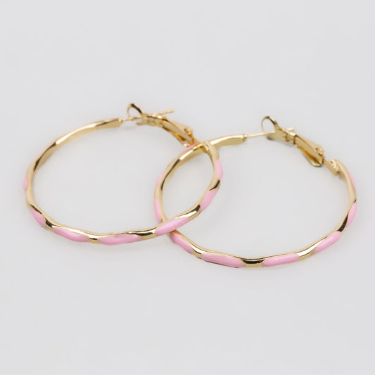 Cercei aurii tip verigă cu accent color glossy - Verde