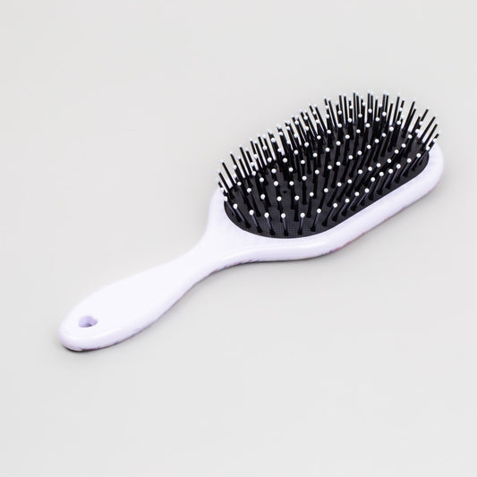 Perie de păr premium, dreptunghiulară cu perforații, textură de silicon, mâner spiralat - Negru, Alb