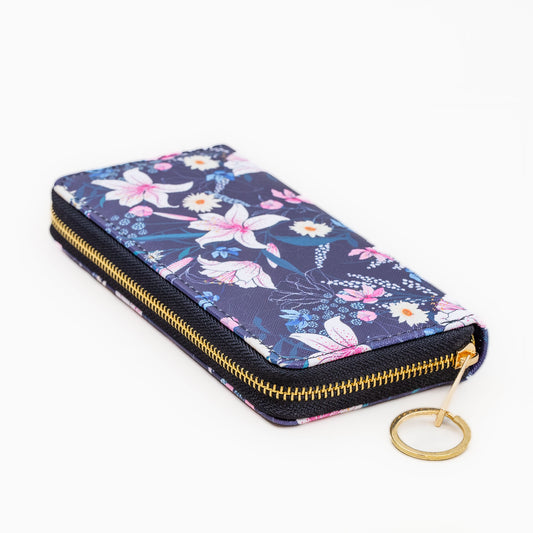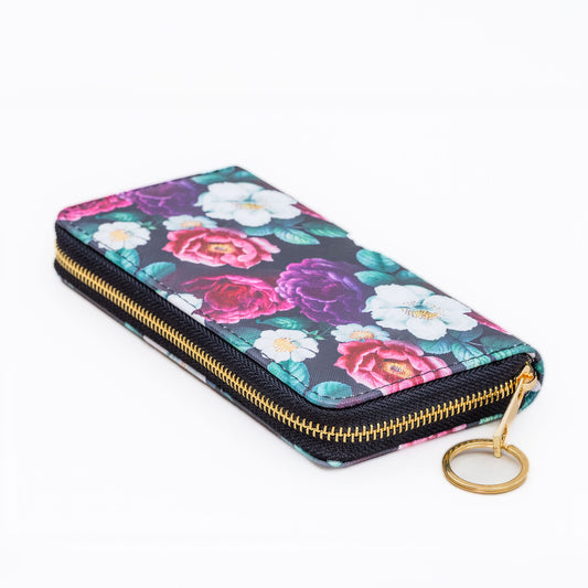 Portofel damă colorat cu feromoar, imprimeu floral, 14 compartimente - Night