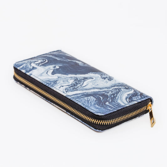 Portofel damă cu fermoar, textură animal print, 14 compartimente - Albastru