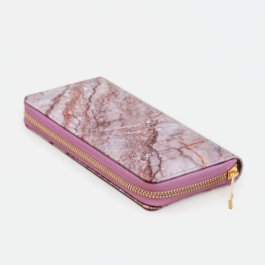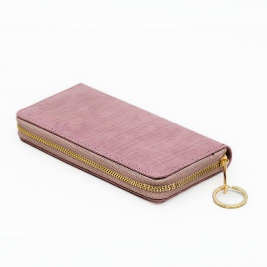 Portofel damă cu fermoar, textură animal print, 14 compartimente - Roz prăfuit