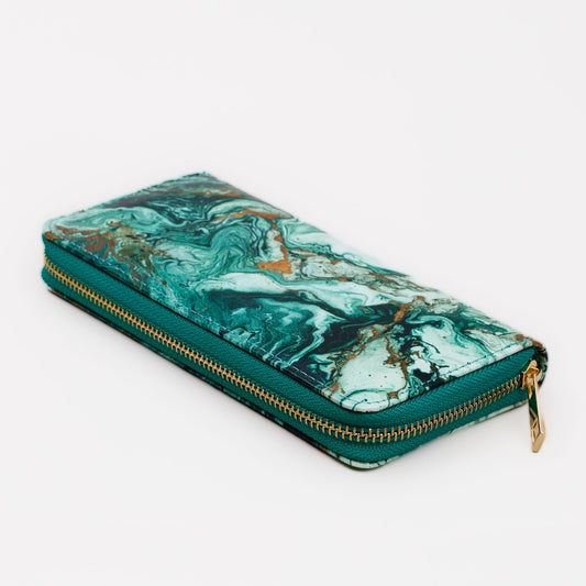 Portofel damă colorat cu feromoar, textură fină lucioasă, 14 compartimente - Verde