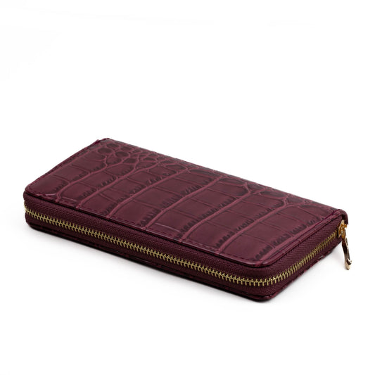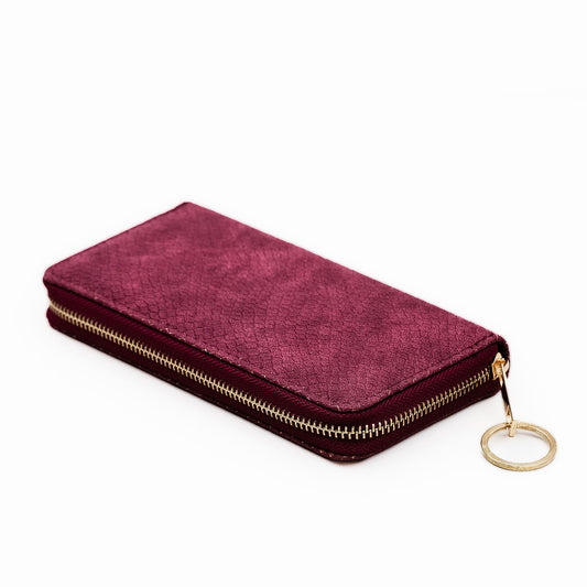 Portofel damă cu fermoar, textură animal print, 14 compartimente - Bordo