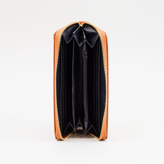 Portofel damă din piele ecologică cu fermoar, cusătură diagonală, 14 compartimente - Maro