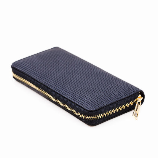 Portofel damă cu fermoar, textură împletită, 14 compartimente - Albastru